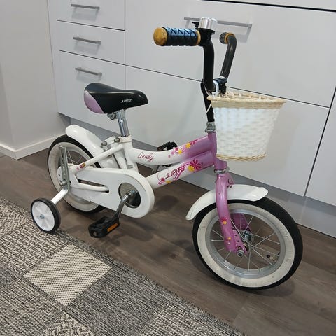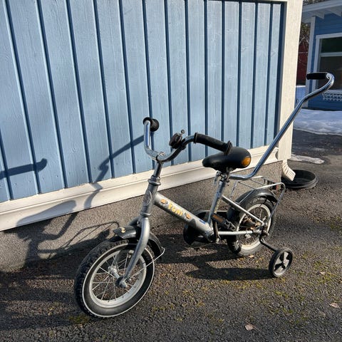 Kunto erinomainen, ei naarmuja, renkaat vielä napakat, ketju puhdas. Sopii 2–4-vuotiaalle (tai vähän isommallekin), kevyt ja helppo polkea.