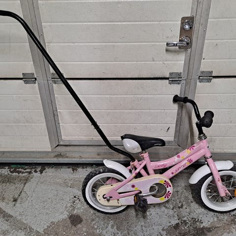 Katso tätä kaunotarta: valkoinen-pinkki runko, keijut ja kukat koristeina, iso läpinäkyvä nukketuoli takana ja söpö kori edessä! 12-tuumaiset renkaat, apupyörät, helppo jarru ja kello – kaikki valmiina seikkailuihin.