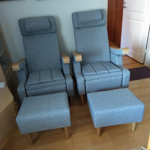 Vähälle käytölle jäänyt, 2018 valmistettu, punainen Armin valmistama nojatuoli ja rahi. Vain nouto.