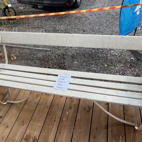 Myydään aito vanha aikanaan käytöstä poistettu jämerätekoinen puistonpenkki, mitat noin: pituus 220cm, korkeus 76cm ja syvyys 64cm. Vahva metallirunko, johon voi halutessaan helposti uusia puuosat, jotka ovat vielä ihan lujaa tekoa. Tässä istuu helposti kolme ihmistä. punainen istuin puutarhapenkki perinteinen ulko ulkopenkki