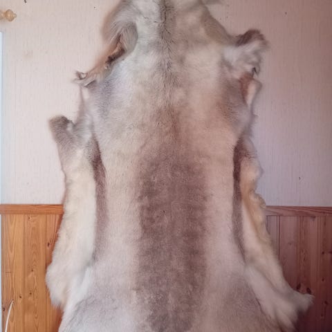 Porontalja, jonka koko noin 110x90cm. Eläintalous.