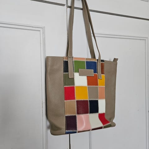 Utuan beigen värinen käytännöllinen ja tilava laukku