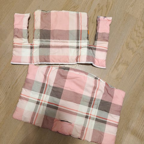 Stokke Tripp Trapp tuolin pehmusteet. Käytettynä meille tulleet. Näissä ei ole likaa hylkivä pinta. Käytetty, suht siisti kunto. Istuinosan etuosasta löysin tahran, katso kuva. Ei ollut pesussa lähtenyt, en koittanut sappisaippuaa, saattaa lähteä sillä. Hyvät pehmusteet seuraavalle.
