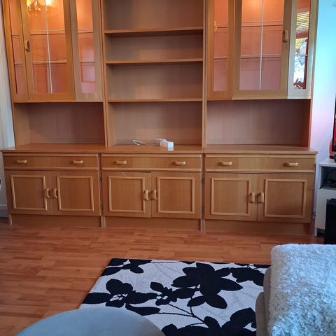 Lahjoitetaan pyökkinen Pikantti-sarjan kirjahyllyn osia. Saa kasattua haluamallaan tavalla. Kuvasta puuttuu seinään kiinnitettävä hylly missä valo. Vitriineihin saa myös valot.