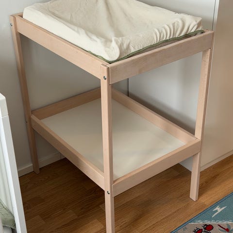 Myydään kaunis vaalea ja kevyesti liikuteltava hoitopöytä seuraavaan vauvaperheeseen.