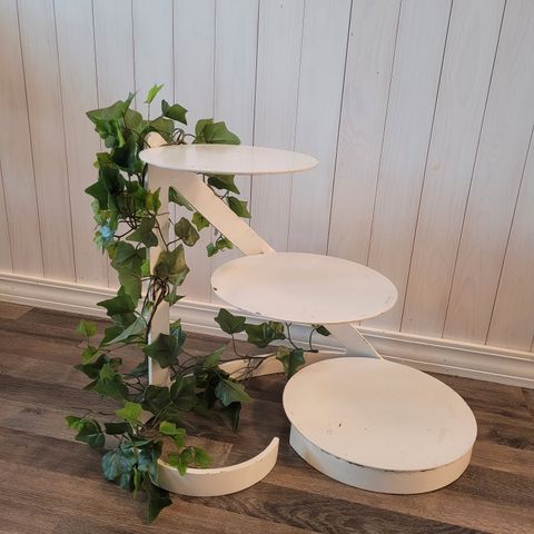 Nelikerroksinen hääkakkuteline. Mukana kuljetusta helpottava kehikko.