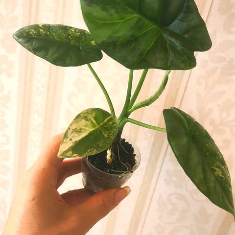 Myydään kuvan iso (25cm ruukkuineen) Alocasia Nobilis pink taimi. Tekee jo juuristossa mukulaa, ainakin kaksi alkua löytyi ruukun vaihdossa. Ovat vielä kiinni myytävässä taimessa, kuuluvat siis kauppaan. 😊