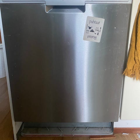 Kunnosta ei tietoa, ei ole ollut käytössä itselläni. Edestä likainen, mutta lienee pestävissä ihan siistiksi. Sijaitsee kellarikerroksen häkkivarastossa, mahtunee hissiin. Malli kuvien perusteella ehkä Bosch SGU43E08SK.