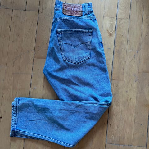 Myyn kuvien leveälahkeiset Levis farkut.