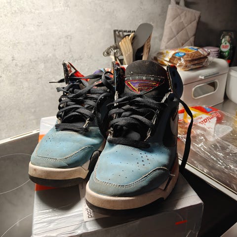 Nike tennarit, koko 40. Väriltään valkoiset, korkeavartiset nauhalliset kengät. Päällinen ja pohja synteettistä materiaalia, sisäosa tekstiiliä. Sopivat arkikäyttöön ja vapaa-aikaan. Unisex-malli.