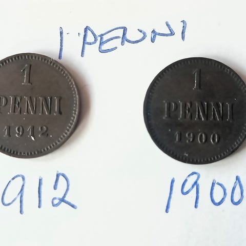 Kuvassa oleva kolikko NIKOLAI II:n ajalta 1905. Kolikkoa naarmutettu- näkyy hyvin kuvissa