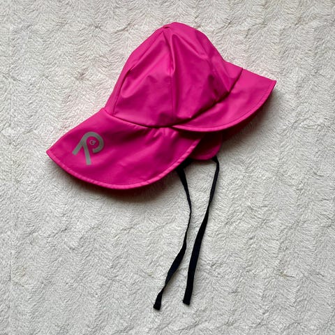 Myydään hyväkuntoinen pinkki Reima sadehattu. Leveä lieri suojaa kasvoja ja niskaa sateelta. Leukahihna pitää hatun päässä. Heijastavat yksityiskohdat reunassa.