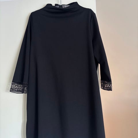 Rento ja helppo tunika mustilla hihoilla ja etu- ja takaosan keskileikkauksella kivasti kaventava vaikutus. Uusi tunika, väljä tornikaulus, laatu viskoosi elastaani neulos, joka ei nyppyynny. Pituus 81cm, vartalon ympärys 124cm, hihan pituus 64cm. Kissatalous. Värit musta, harmaa. Kuin uusi.