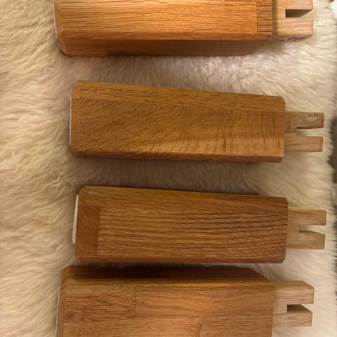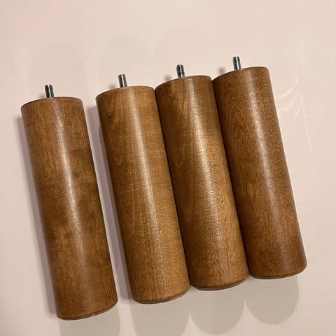 Hyväkuntoiset universaalit sägyn tammi jalat, vakiokierteellä, korkeus 18cm. Sängynvaihdon yhteydessä jäivät ylimääräisiksi, uuteen sänkyyn tuli tismalleen samanlaiset.