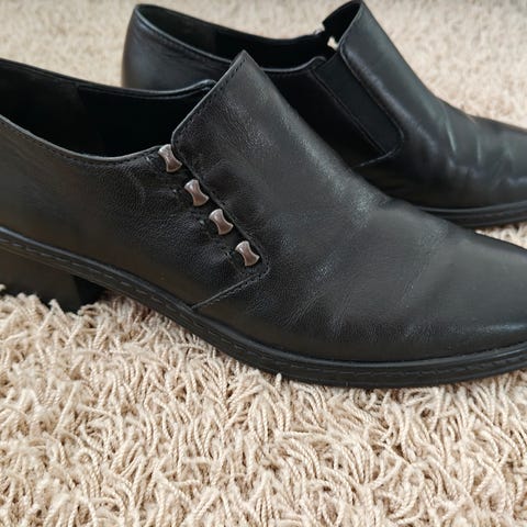 Niissä on 3,5 cm korkea leveä kanta. Kantalaput ovat uudenveroiset.