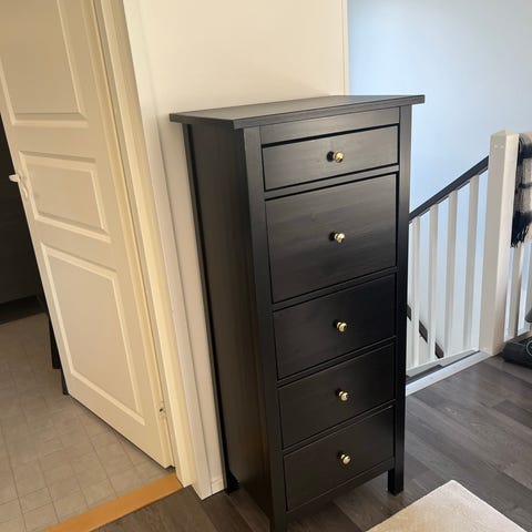 Ikea HEMNES lipasto, mustanruskea petsaus. Kaksi laatikkoa, toimivat moitteetta.