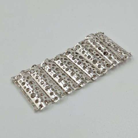 Myydään upea ja keräilty Liisa Vitalin suunnittelema Gardenia-rannekoru. Tämä orgaanisen muotoilun klassikko on valmistettu Kultakeskuksella vuonna 1974, ja se on säilyttänyt arvonsa ja suosionsa vuosikymmenten halki.