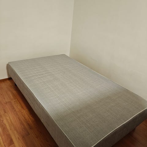 Jysk sänky mustalla verhoilulla ja valkoinen patja mukana kaikki uudet ja vasta ostetut ei ole käytetty kuin kerran kokeiluna eikä ollut hyvä ja Yksinkertainen runkosänky, jossa neljä jalkaa. Sopii esimerkiksi yhden hengen sängyksi tai varavuoteeksi. Kuitti tallessa ja uusi patja tulee myös + patjan pääliset ja vedenkestävä alusta patjan päälle.