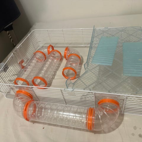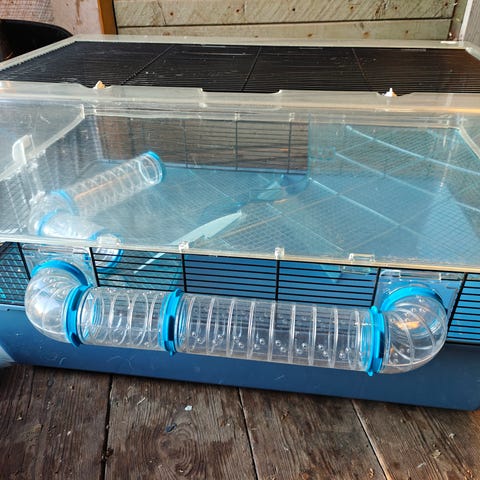Halutessa mukaan saa viimeisissä kuvissa olevan juoksupyörän, menee hyvin sisälle ja on tarpeeksi iso melkein kaikille pien jyrsijöille.