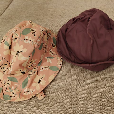 POPin sadehattu kokoa 50. Värinä on violetti. Kiinnitetään leuan alle tarralla. Hyvä kunto seuraavallekin.