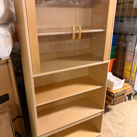 Kaappi on kahdessa osassa yläosa (kirjojen tasosta ylöspäin on irrallaan mutta on sen verran painava että pysyy siinä. Mahdollisuus myös itse ruuvailla kiinni, jos haluaa.