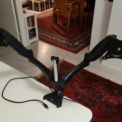 Arcticin kahden näytön monitorivarsi 4xUsb paikalla. Kaikki mukana tulleet ruuvit ja työkalut tallessa!!