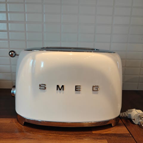 Smeg kahvinkeitin kermanvärinen. Laitteessa on lasikannu ja sisäänrakennettu suodatin. Etupaneelissa on painikkeet käyttöasetuksille. Automaattinen virrankatkaisu.