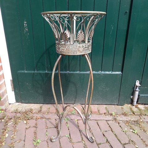 Kaunis koristeellinen kasvinjalusta, valmistettu metallista.Valmistettu huolella. Metallin vihreä väri antaa kokonaisuudelle rustiikin vivahteen.Jalustalla on 3 tasoa eri korkeuksilla.Saranat mahdollistavat tasojen kääntymisen pituussuunnassa.Koot noin:Korkeus: 66 cmLeveys: 47 cmSyvyys: 33 cmVarmistettu toimitus seurannalla.