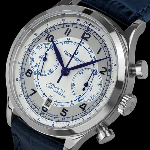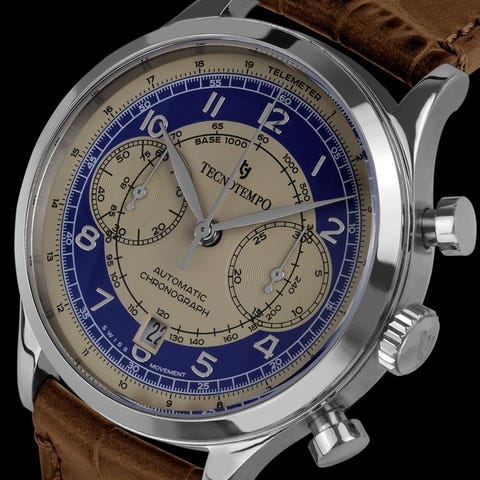 Tecnotempo on italialainen brändi ja rekisteröity tavaramerkki.Tecnotempo on italialainen brändi, joka yhdistää laadun ja muotoilun jokaisessa kellossa niille, jotka arvostavat ajattomaa tyyliä.Jokainen malli, korkealaatuisista komponenteista valmistettu, edustaa täydellistä kohtaamista perinteen ja innovaation välillä niille, jotka elävät aikaa tyylillä.Tässä huudossa tarjoamme:Tecnotempo Automatic Chronograph - "TelemetriX" - Swiss Movt - Rajoitettu Erä 300 KPLUusi kyvytetyn laatikon ja 2 vuoden virallinen takuuSveitsiläinen automaattinen liike Landeron**** TÄRKEÄ Tekniset tiedot: : Huomaa, että tämän Landeronin automaattinen kronografiliikkeen kuuleminen voi olla kova ääni, jos automaattiliikkeen heiluri pyörii nopeasti.On normaalia, että tämän mekaanisen kellon minuutin osoittavan käden viivästyy minuutin verran, kun se käynnistetään. Koska kyseessä on mekaaninen kello, jos kun kellon käynnistät, minuutin käsi liikkuu noin minuutin sekuntien jälkeen, tämä on normaalia. Tämän vaikutuksen poistamiseksi tai merkittävästi vähentämiseksi suosittelemme aina asettamaan kellon siirtämällä käsivarsien hetken aikaa hieman oikeaa aikaa edeltäen ja sitten palauttamaan ne oikeaan aikaan (käytännössä ajan asettamisen yhteydessä minuutin käden viimeinen liike on vastapäivään). ******Kotelon halkaisija 40 mm (nokkaa lukuun ottamatta) ja paksuus 15,2 mmRuostumaton teräs 316L -kotelossaAutomaattinen Kronograf (enintään 30 minuuttia)Telemetri-toiminto:Telemetriaa käytetään mittaamaan havaitsijan ja ilmiön välillä olevaa etäisyyttä (kuten salamasta) joka näytetään ensin näköaistin ja sitten äänen avulla. Mittaus perustuu äänen nopeuteen (343 m/s). Esimerkiksi salamanuolen etäisyyden määrittämiseksi kellon käyttäjästä alkaen, aloita kronografi salamaleiman ilmestyessä; pysäytä kronografi kun kuulet jyrinän, ja kronografin sekuntiviisari näyttää etäisyyden kilometreinä teletrapin asteikolla. Safiirilasi Lukituskruunu 3 ATM vedenkestävyys (EI sovellu uintiin tai suihkussa käyntiin) Päiväys (välttääksesi mahdollisen kellon mekanismin vaurion, älä vaihda päivän/päivämäärän arvoa manuaalisesti kruunulla kellon ajan ollessa 20:00–03:00; tämä sääntö koskee kaikkia päivämäärä-kelloja) Ruskean oikean livenahkavyön valmistettu Italiassa RAJOITETTU ERÄ 300 KPL. Kotelon halkaisija: 40 mm (lukuun ottamatta koko kruunua) Kotelon paksuus: 15,2 mm Rannekkeen leveys: 20 mm-18 mm TÄRKEÄ: kellon pituus alkaen soljesta viimeiseen kiinnityskohtaan on 21,5 cm (tässä mallissa meillä ei ole pidempiä rannekkeita) Paino: noin 95 g. Kotelo, Takuu ja Liikkeen Käyttöohje (englanti/italia) Tavarat pakataan huolellisesti ja toimitetaan Italiasta kuriirilla (seurattavissa ja vakuutettu)#mostwantedwatches