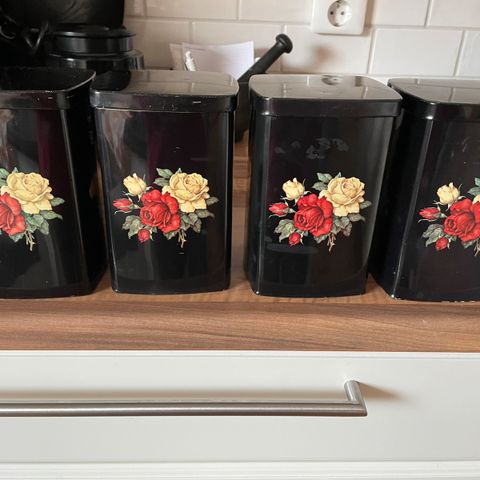 Myydään settinä. Samaa kukkasarjaa löytyy myös suorakaiteen muotoiset rasiat myös.