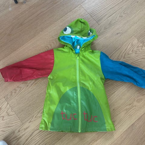 Myydään fleece-vuorellinen sadetakki 92 cm autokuviolla ja irrotettavalla hupulla. Lähes käyttämättömäksi jäänyt eli kunnossa en huomaa moitteen sijaa.