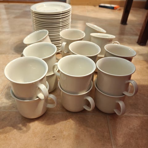 Arabia Arctica kahvikupit ja kermakko, valkoinen posliini