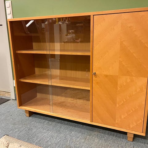 Asko, Aukusti, kirjakaappi, vitriini, vitriinikaappi, kirjahylly, hyllykkö, kaappi, kotimainen, suomalainen, design, klassikko, koivu, vaalea puu, puukaappi, uustuotanto, retro, vintage, skandinaavinen, sisustus, olohuone, säilytys, Jämsä, Tuusula.