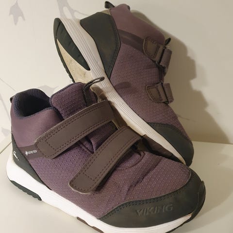 Violetit Viking Ludo Low goretex lenkkarit. Uutena ostettu ja kevään sekä syksyn olleet käytössä. Olleet koululaisella ja edelleen hyvässä kunnossa seuraavalle. Pesty, mutta hiekasta tullutta tummentumaa jäi.
