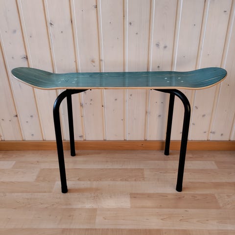 ja kannen toisella puolella koristekuvio. Pöydän korkeus noin 39cm