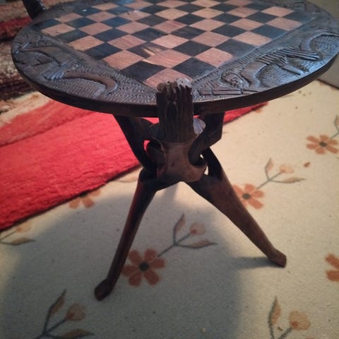 Haitilainen shakkipöytä + nappulat / kääntöpöytä