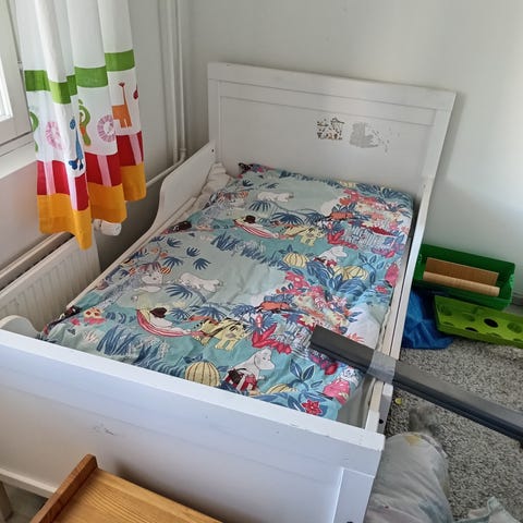 Ostettu useampi vuosi sitten on24 kaupasta. Sänky tukevaa puuta. Käytönjälkeä oikeastaan vaan liimatuista tarroista ja ledi valoista. Tarrat ja valot saa poistettua. Patjan koko n 145cm x 60cm. Patjan saa mukaan jos haluaa. Sänkyä ei ole purettu osiin.