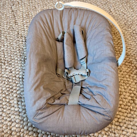 Tämä oli meillä todella hyvä ja etenkin toisen lapsen kanssa kätevä, kun vauvan sai mukaan perheen ruokailuhetkiin ja pystyi laskemaan siihen esim ruokaa laittaessa. Oli meillä käytössä 6kk ikään kunnes vauva siirtyi istumaan syöttötuoliin.