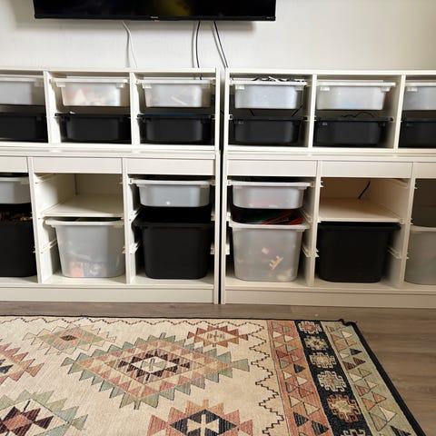 Tukeva kalustesarja lelujen säilyttämiseen ja järjestämiseen.