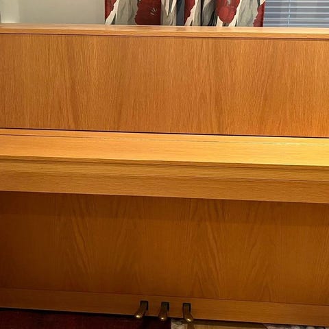 Hellas pystypiano vaalealla puuviilupinnalla. Piano sopii esimerkiksi olohuoneeseen tai pieneen tilaan seinän viereen sijoitettavaksi. Soittimessa on täysikokoinen koskettimisto ja kolme poljinta. Runko ja kansi ovat yksiväristä vaaleaa puuta, joka sulautuu helposti erilaiseen sisustukseen. Soveltuu pianonsoiton harjoitteluun kotikäytössä eri tasoisille soittajille. Autetaan kantamisessa.