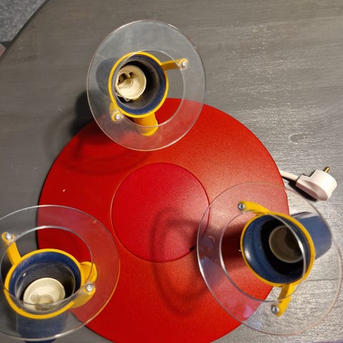 Kolme pallomaista ruskeaa kupua, joita voidaan kohdistaa haluttuun suuntaan. Ei naarmuja tai säröjä.