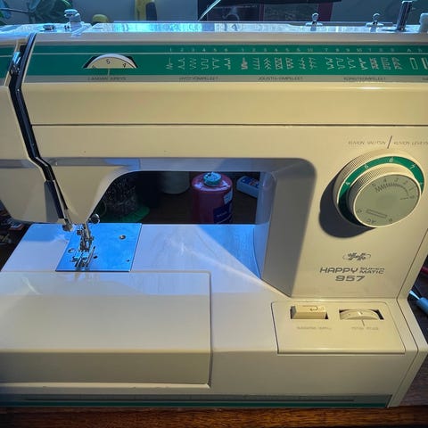 Juuri huollettu hyvässä kunnossa oleva vähän käytetty EVA M3000 ompelukone. Koneessa on suoran ja siksakommelten lisäksi kaksi piilo-ommelta ja yteenompelu ommelta. Jousto-ompeleita on kaksi ja yliluotteluommelta kolme. Lisäksi napinläpi ompeleet. Tikin pituuden säätö on koneen päädyssä. Mukaan tulee kuvassa näkyvät jalkapoljin, virtajohto, käyttöohjeet, neuloja, puolia, paininjalkoja.