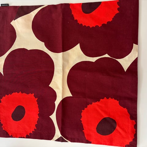 Marimekko sisustustyynynpäällinen. Erittäin siisti ja vähäisellä käytöllä ollut. Pesty. Kaunis ja kestävä materiaali. Puuvillaa 80%, pellavaa 20%. 🌱☘️💚