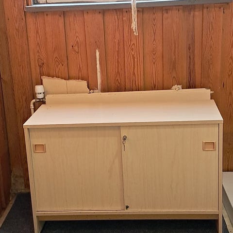 Toisen puolesta myyntiin. Iskusta aikanaan ostettu täysipuinen kaappi. Alaosa: lev 152,syv 45,5, korkeus 87. Yläosa: kork 110, syv 39,5. Vain nouto. Omat kantajat mukaan.