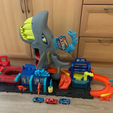 Hot Wheels autorata ja kaksi autoa