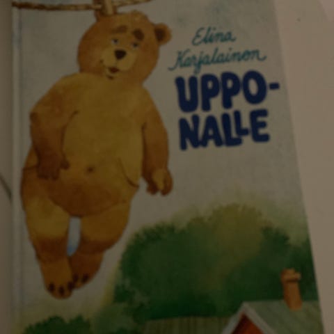 Elina Karjalaisen Uppo-Nallen juhlakirja -lastenkirja. Kovakantinen painos vuodelta 2000, kuvitus Hannu Taina.