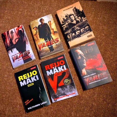 Reijo Mäen kirjoja. Kirjat kuuluvat Vares-sarjaan ja ovat suomenkielisiä. Sopii lukijalle, jota kiinnostavat kotimaiset rikos- ja jännityskirjat. Myydään mielellään kaikki kirjat kerrallaan. 2€/kpl. Kaikki yhdessä 12€.