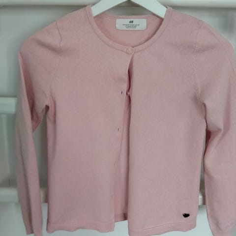 Siistikuntoinen vähällä käytöllä ollut vaaleanpunainen neuletakki, koko 134. Hajusteeton ja eläimetön koti.