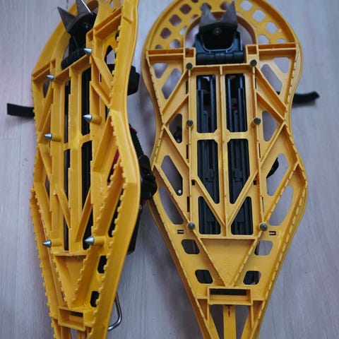 Hyväkuntoiset Morpho lumikengät monipuolisilla säädöillä. Menee eri kokoiseen kenkään ja side on näppärästi säätyvä.