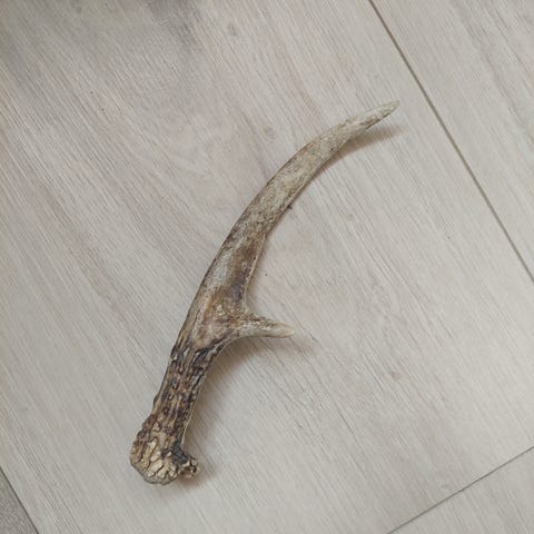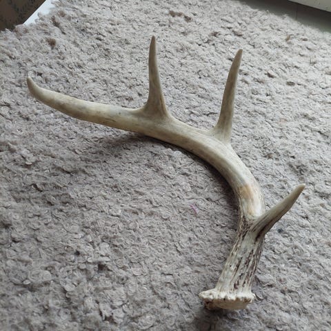 Myydään aito, luonnosta löytynyt peuran sarvi.